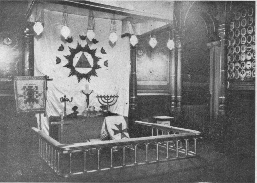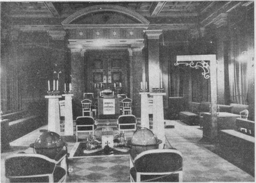 mottar brødrene frimurerringen. Salen har stor likhet med en synagoge. Som vi