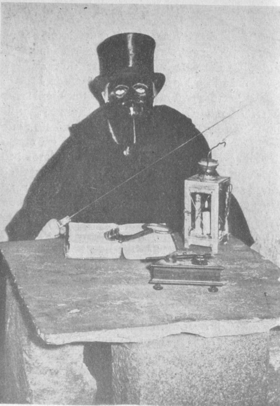 dødningeskalle. I rommet ved siden av rasler sekretærene med jernlenker, ramler