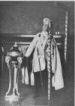 mester kommer ned fra alteret med klubben i hånden og leser fra ritualboken et