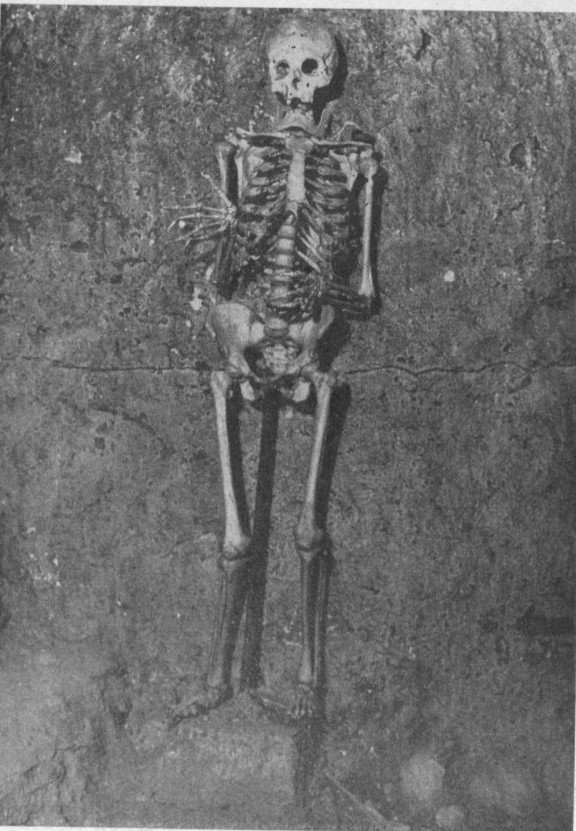 mot den ser han at det er et stående skjelett. Neste dødsfelle må være her noe