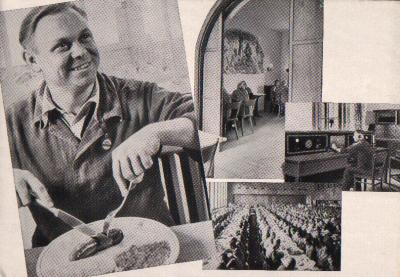 I icke ringare mån måste man uppskatta det arbete, som utföres av avdelningen ”Arbetets skönhet” i den nationalsocialistiska gemenskapen K.d.F. ”Arbetets skönhet” har till ändamål att anlägga nya, oklanderliga trädgårdsanläggningar, simbad, tvätt- och omklädningsrum, marketenterier o.s.v. ”Arbetets skönhet” innebär förbättring av manskapets skansar på fartygen för lokaltrafik, anläggning av mönsterbyar, upprensning av fula och osnygga bostadskvarter och av allt fult och estetiskt stötande. Över 600 millioner Rmk. ha på föranstaltande och under medverkan av avdelningen ”Arbetets skönhet” redan förbrukats. De tyska arbetsplatserna kunna i dag i fråga om glatt utseende, ljus, utrymme och god smak konkurrera med varje annan industrianläggning i världen.