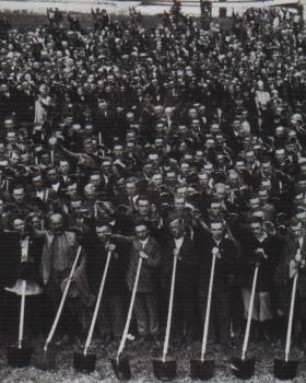 ”... Det beror inte på någon tillfällighet, att de partier, som representerade klasskampen och klassplittringen först så våldsamt kämpade mot den obligatoriska arbetstjänsten. De levde på folkets splittring och ville därför icke, att den tyska tvedräkten skulle upphöra. Därför ljögo de i massorna, att arbetstjänsten bara var till för att beröva arbetaren hans arbete. De hade visserligen ingen arbetstjänst, men därför hade de också 6 millioner arbetslösa. Vi ha infört arbetstjänsten och antalet arbetslösa har sjunkit till hälften. Men vi vilja inte ha arbetstjänsten för att beröva arbetarna några platser, och med hänsyn till antalet arbetslösa och antalet personer inom arbetstjänsten är denna tanke absurd. Nej! Vi vilja ha arbetstjänsten för att tvinga varje ung tysk att en gång i sitt liv genom sina händers verk bidraga till att uppbygga sitt fosterland. Men vi vilja framför allt tvinga de tyskar, som i sin levnadsställning inte utföra något kroppsligt arbete att lära känna det kroppsliga arbetet och därigenom vinna förståelse för varje folkkamrat, som arbetar på åkern eller i fabriken eller verkstaden. Vi vilja hos dem utrota det högmod, varmed tyvärr så många intellektuella se ned på kroppsarbetet, och vi vilja också å andra sidan stärka deras självförtroende genom medvetandet om att också de kunna utföra kroppsarbete. Därigenom vilja vi bidraga till att skapa förståelse mellan klasserna och stärka folkgemenskapens band. Vi vilja, att de ömsesidigt skola lära känna varandra för att på så sätt finna de naturliga förutsättningarna för en verklig gemenskap. Ty under loppet av flera århundraden har denna gemenskap upplösts. Det är nationalsocialismens absoluta vilja att åter göra den levande. Men vi veta alla, att ord och yttre bekännelser inte leda till denna gemenskap utan endast en ny, inre, människornas fostran.”
